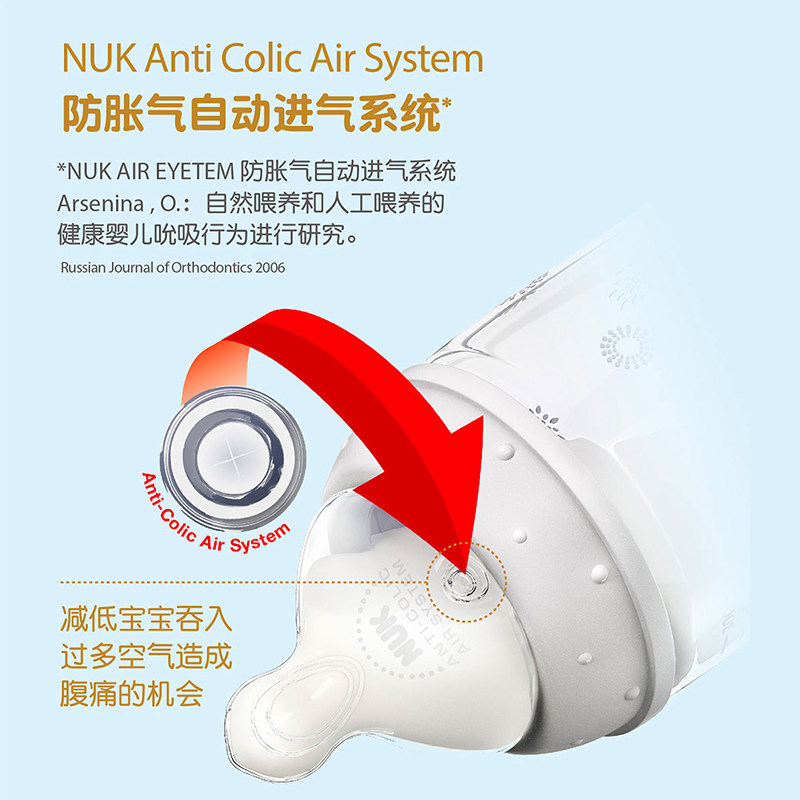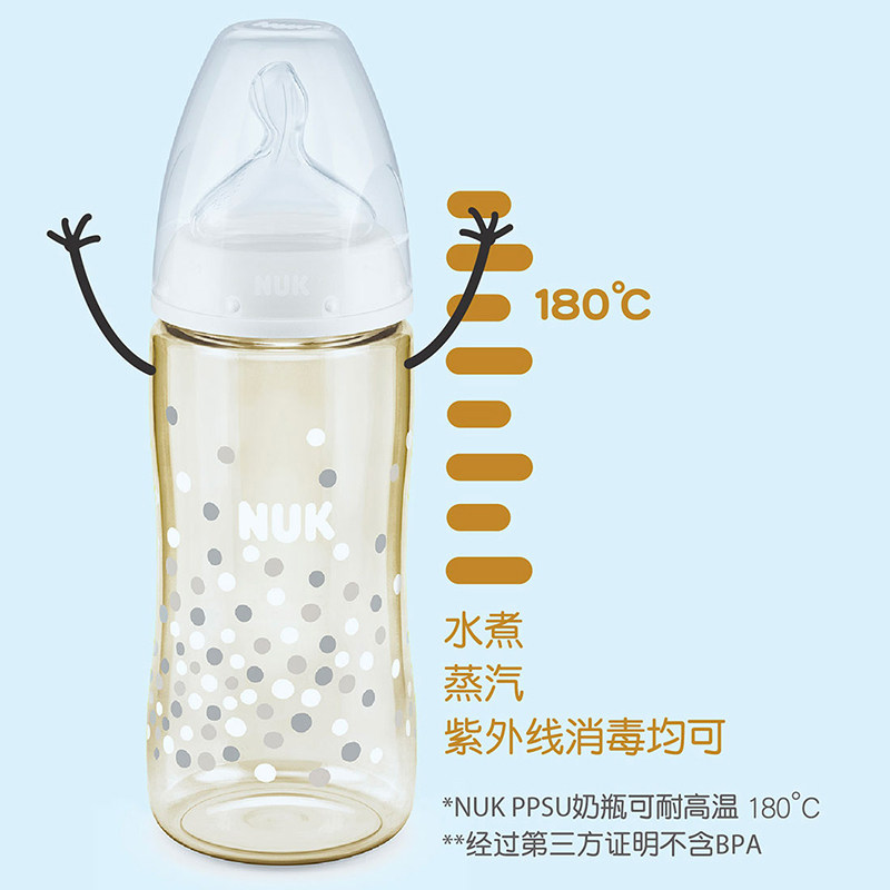 NUK German wide-caliber color bottle PPSU high temperature resistance and drop resistance with anti-flatulence silicone round hole nipple