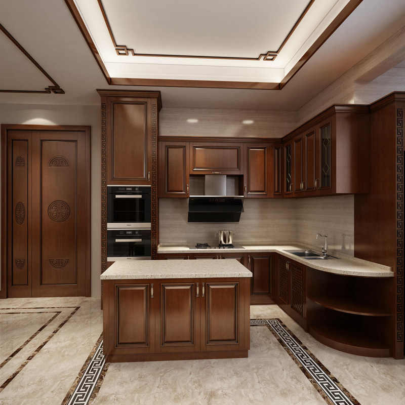 Shanghai full house custom Chinese solid wood overall overall cabinet log open kitchen quartz stone island bench set for A23
