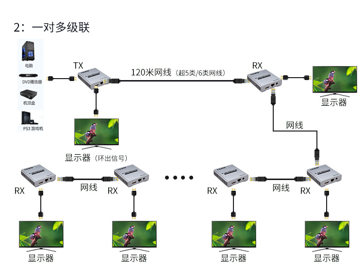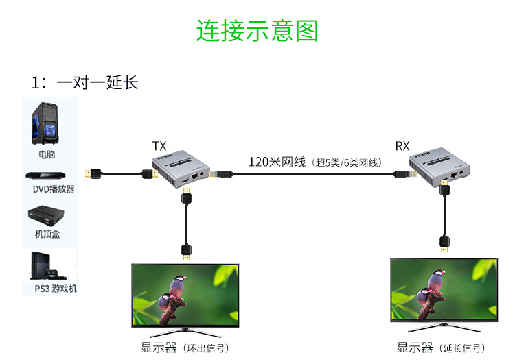 HDMI Extender signal extender 4K amplifies 120 m 100 single network routes to transmit a couple of more