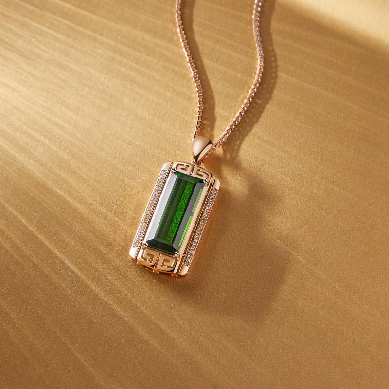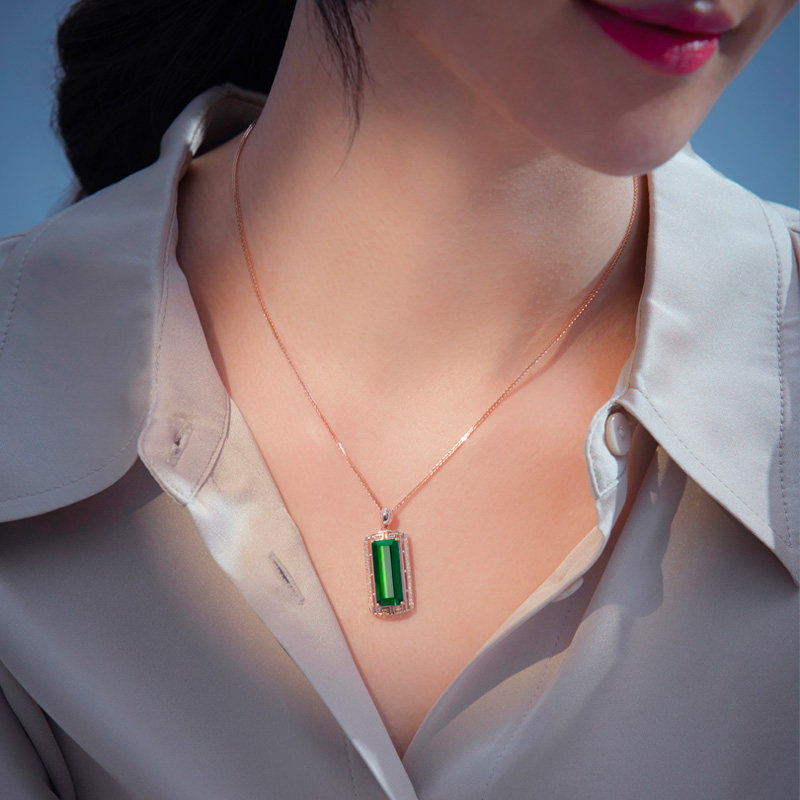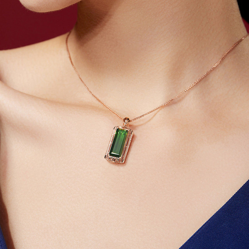 Yi color jewelry natural green tourmaline necklace pendant woman 18K gold square green gem