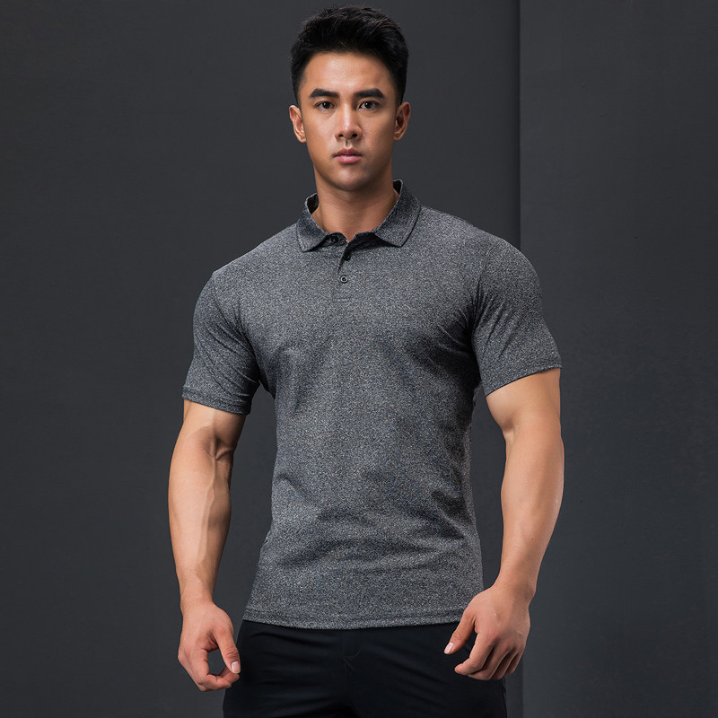 Line iron wolf fitness quick dry air high elastic loose training short sleeve lapel sports polo shirt men's casual half sleeve