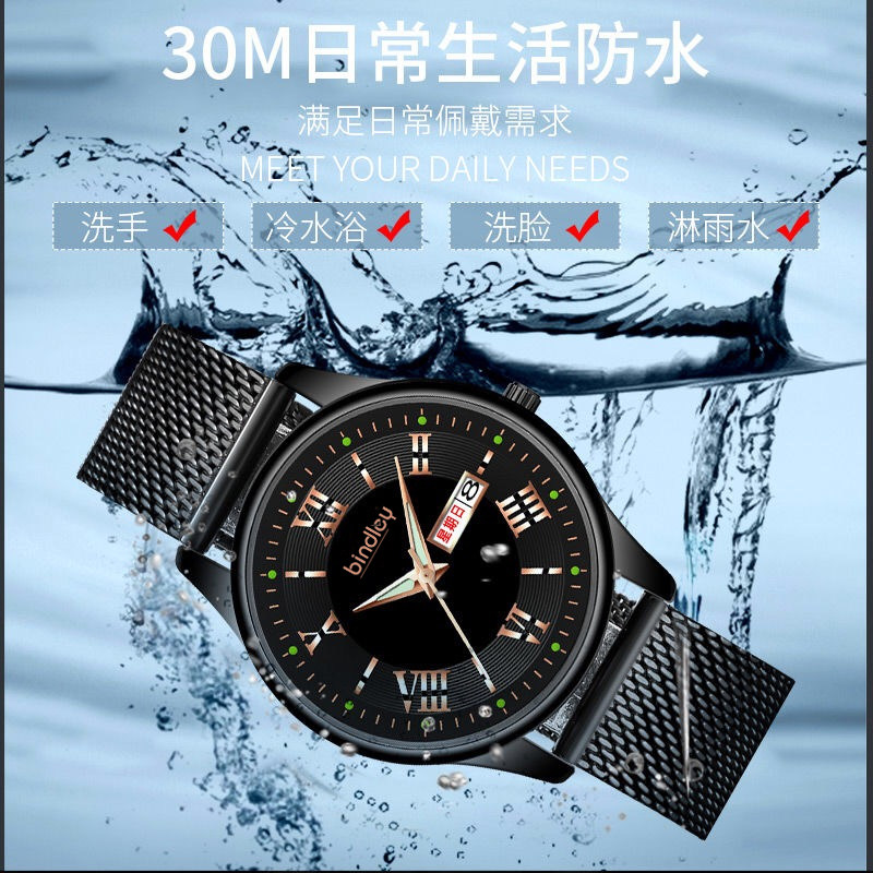 Non-fading luminous waterproof 355 double calendar black shell starry sky black belt Non-fading luminous waterproof 355 double calendar black shell starry sky black mesh belt Non-fading luminous waterproof 3