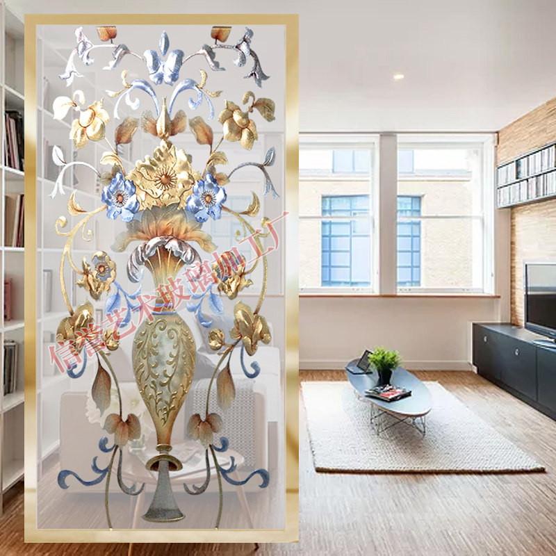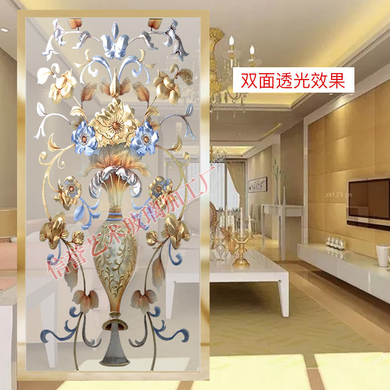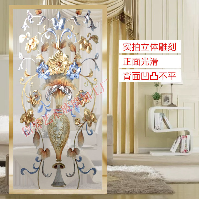 Art glass partition screen decoration living room entrance cabinet TV background wall carved frosted European vase