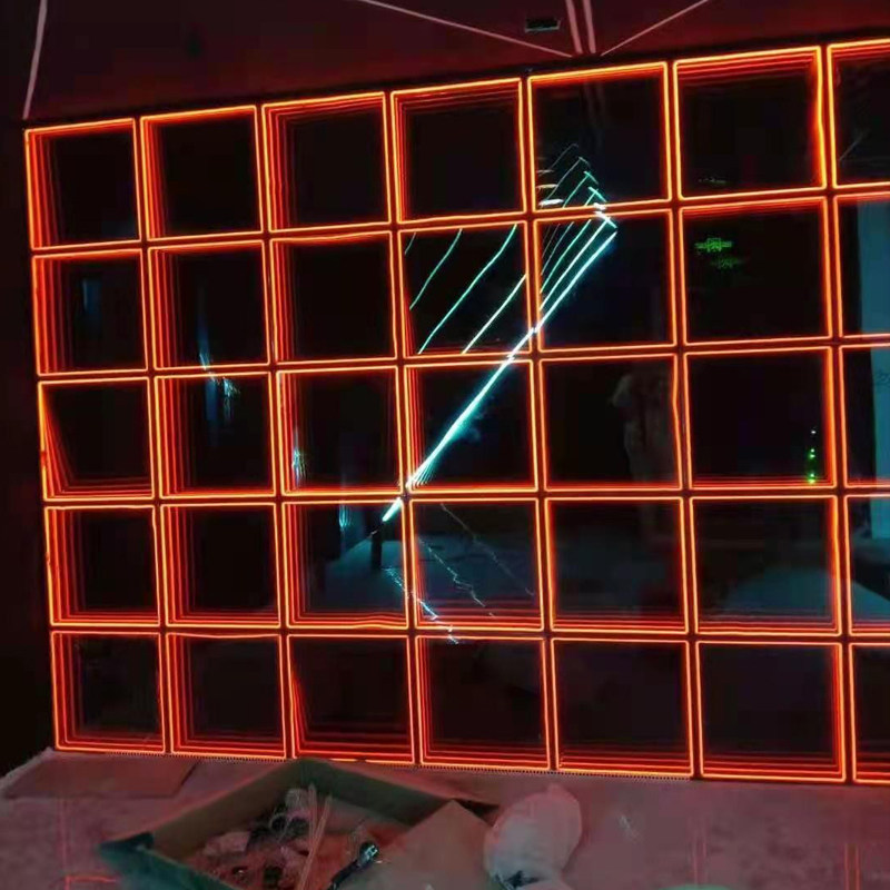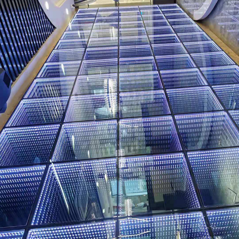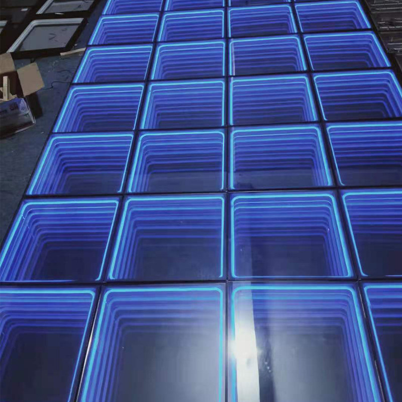 LED multi-layer mirror 3D abyss mirror floor background wall tramping bar stage luminous neon induction floor brick light