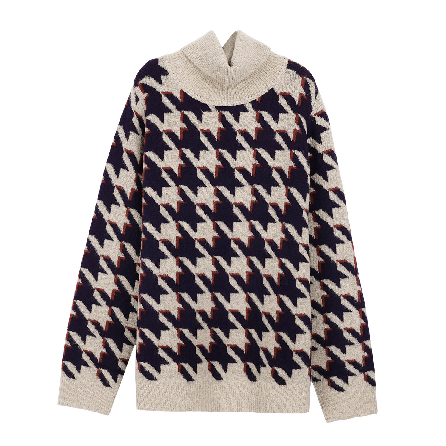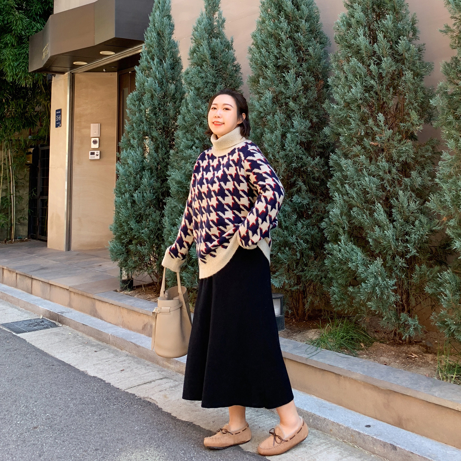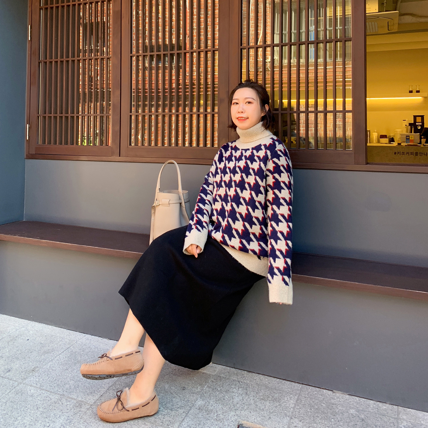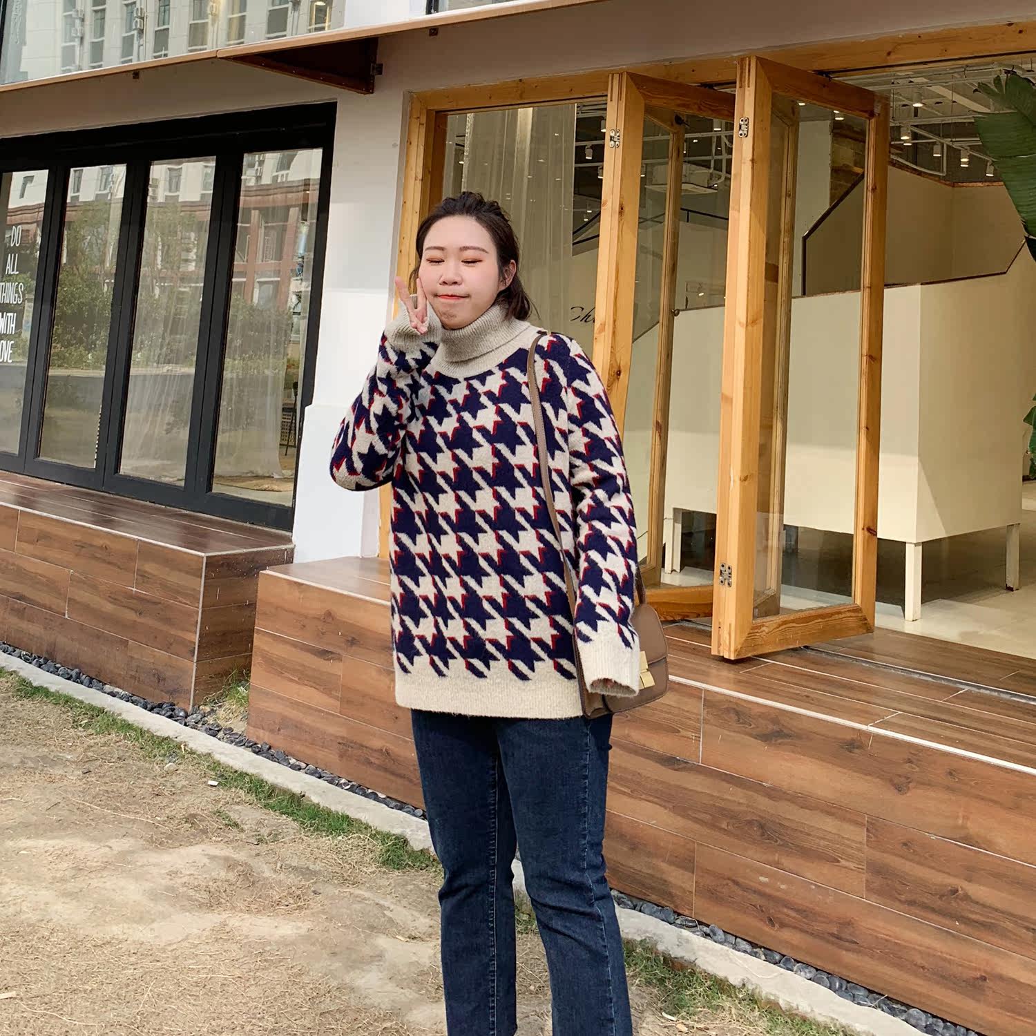 ALIN custom large size women's clothing 2019 new seahorse hair loose fat mm houndstooth sweater women loose and wild