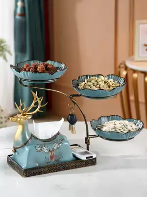 Light blue five-grid rotating fruit tray tissue box light blue iron elk tissue box three-grid dried fruit plate light blue iron art five-grid fruit plate light blue iron art four-grid dried fruit plate light blue iron Elk