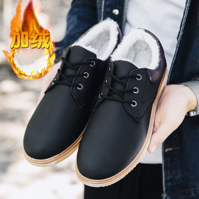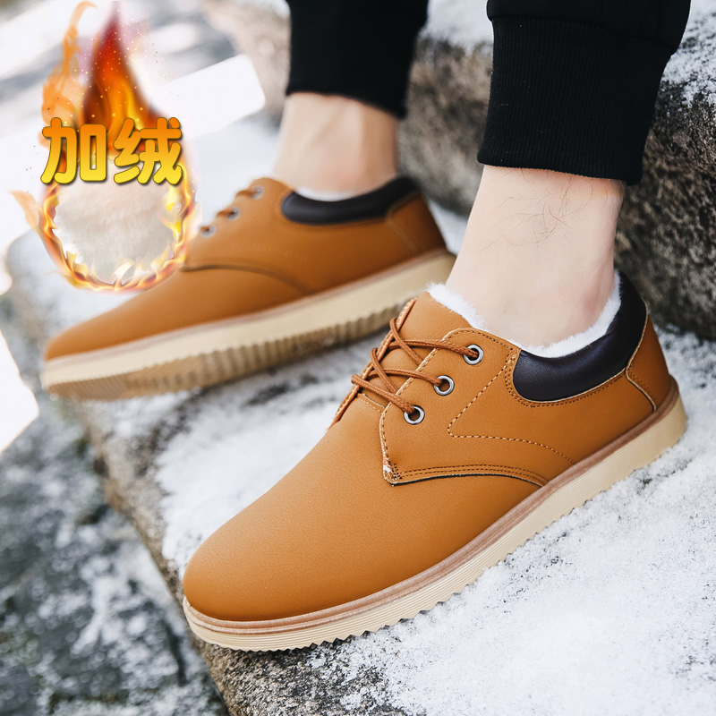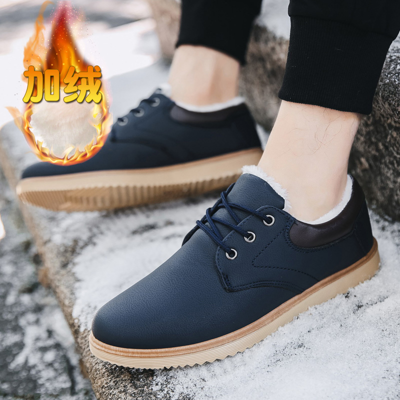 Winter men's work shoes waterproof casual leather shoes Korean version all-match plus velvet thick warm cotton shoes men's shoes chef shoes