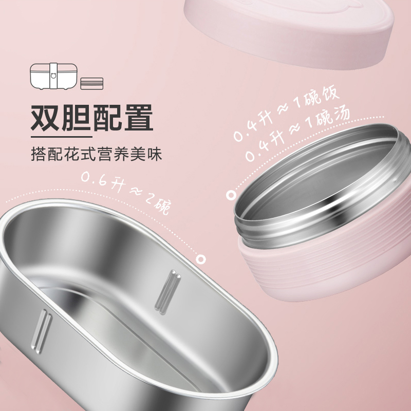 Small bear heating lunch box can be plugged in office work group electric lunch box insulation steamed rice with soup hot meal Vegetable Lunchbox boxed box
