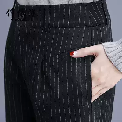 Large size high waist plus velvet Haren pants women loose autumn and winter New lob warm pants black casual small feet trousers