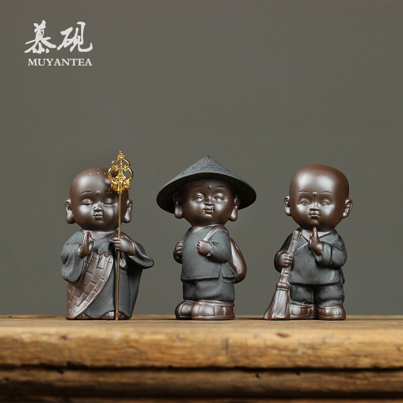 Mu Yan Zen Purple Sand tea Pet little monk ornaments Handmade tea play Kung Fu tea set Tea ceremony zero matching can raise a monk