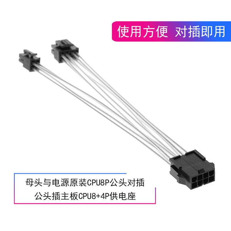 Computer power supply CPU adapter cable 8pin to 8p 4p expansion cable Silver-plated motherboard auxiliary power supply 8 to 8 plus 4