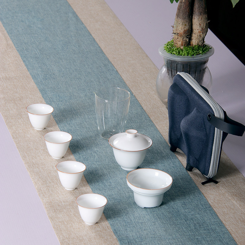 Defied Sweet White Porcelain Sketching Gold Thread Cover Bowl Portable Travel Tea Set Gift Box Ceramic Kung Fu Tourism Tea Cup Custom