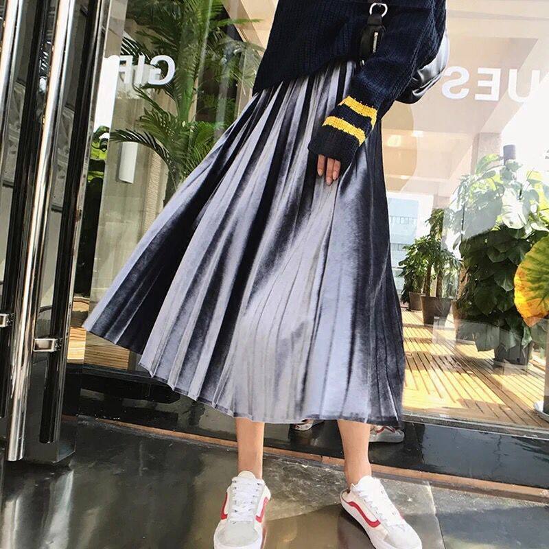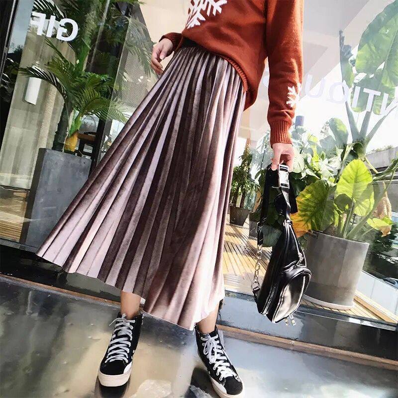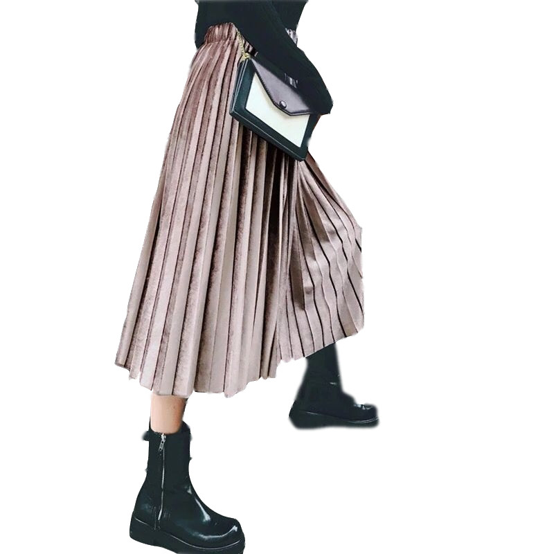 Pregnant woman half-body skirt-autumn winter velvet medium long version 100 pleat skirt adjustable in fall nursery A word large swing nepotism