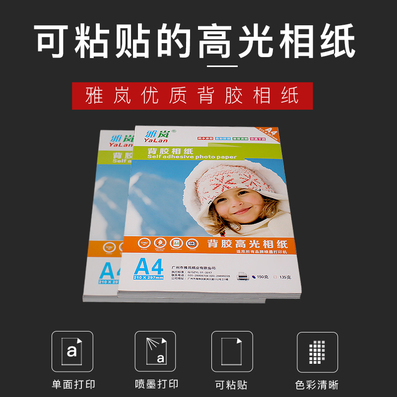 A6|135g|100 sheets High-gloss self-adhesive photo paper (for inkjet) A6|150g|200 sheets High-gloss self-adhesive photo paper (for inkjet) A5|135g|