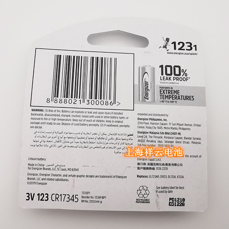 New Energizer surge in US original imported CR123A lithium battery 3V camera battery