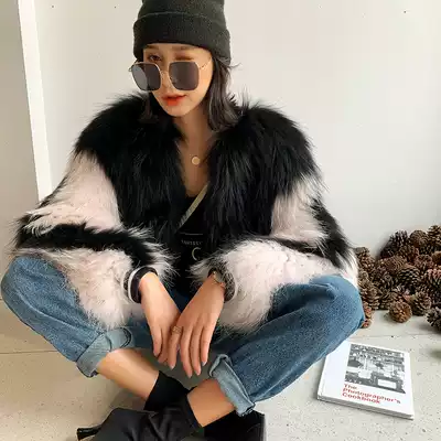 Raccoon hair woven fur jacket women's short sports baseball contrast color slim slim long sleeves 2020 winter new