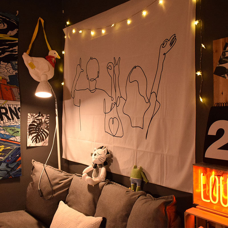 Abstract line painting style hanging cloth background cloth rental dormitory renovation room decoration ins net red live photo