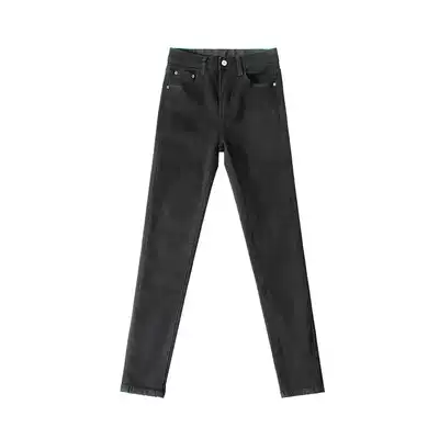Black high waist plus velvet jeans women's winter tight trousers thickened warm models thin elastic waist small boots pants