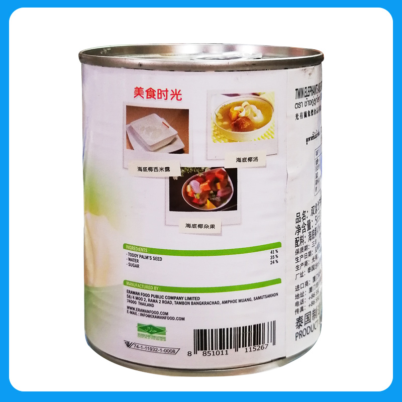 Thai imports Double Elephant Earth Plates Seabed Coconut 565g * 4 cans of sugar water Baiyutan dessert