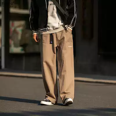 Purify the eyeball original homemade webbing ins tide brand casual overalls pants men loose straight sports hip-hop wide legs