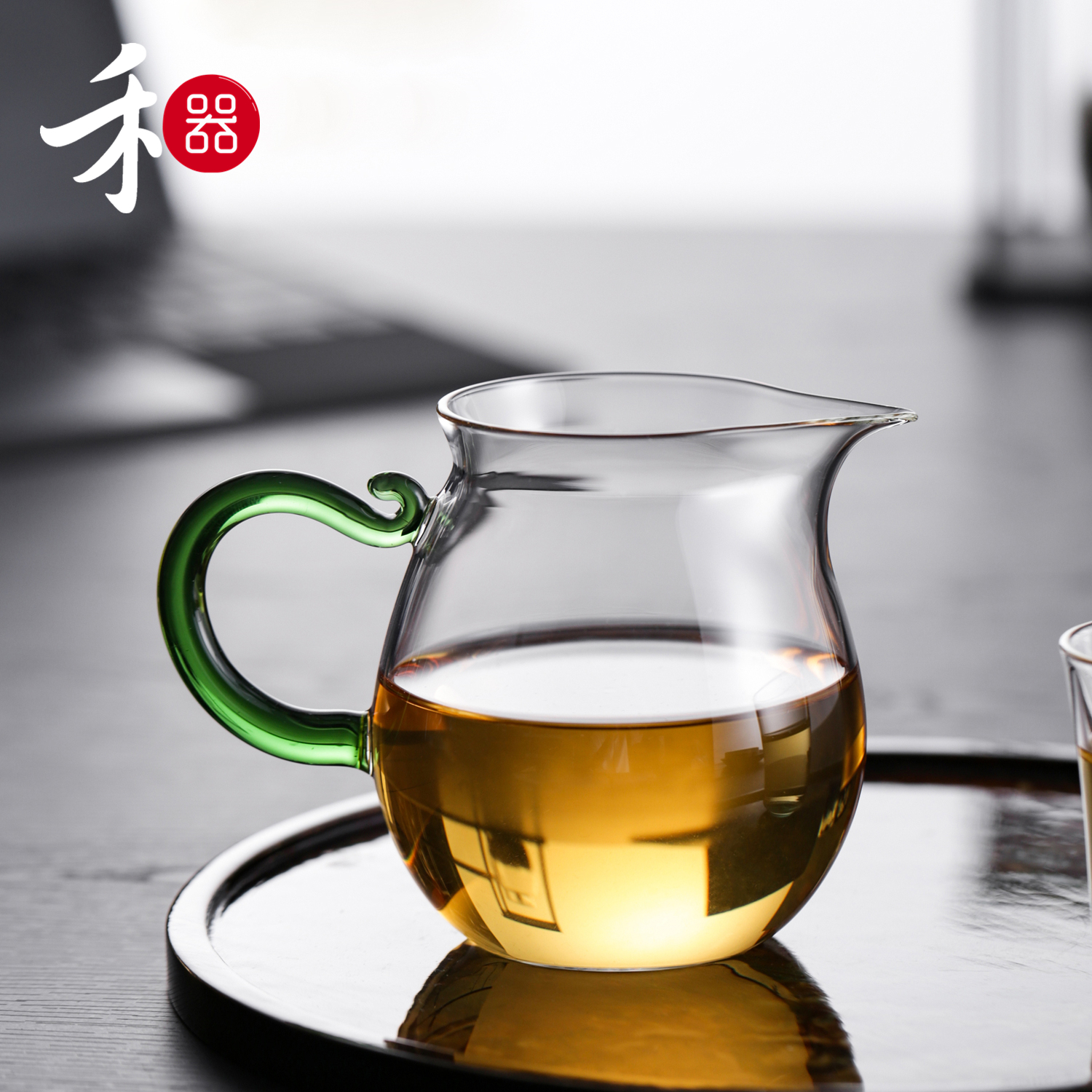 He ware handmade glass fair cup crystal color rhyme tea sea tea ware high-grade heat-resistant glass kung fu tea set