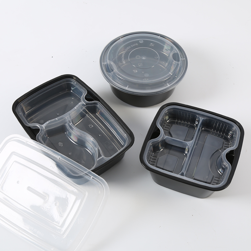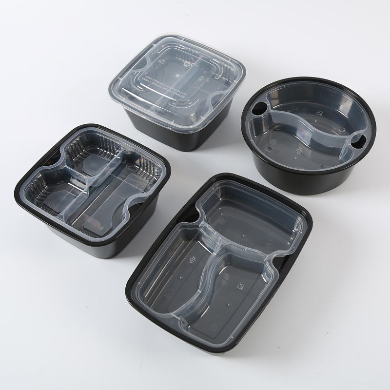 American rectangular double-grid three-grid lined lunch box Double-layer disposable lunch box Round two-layer lunch box