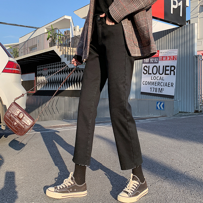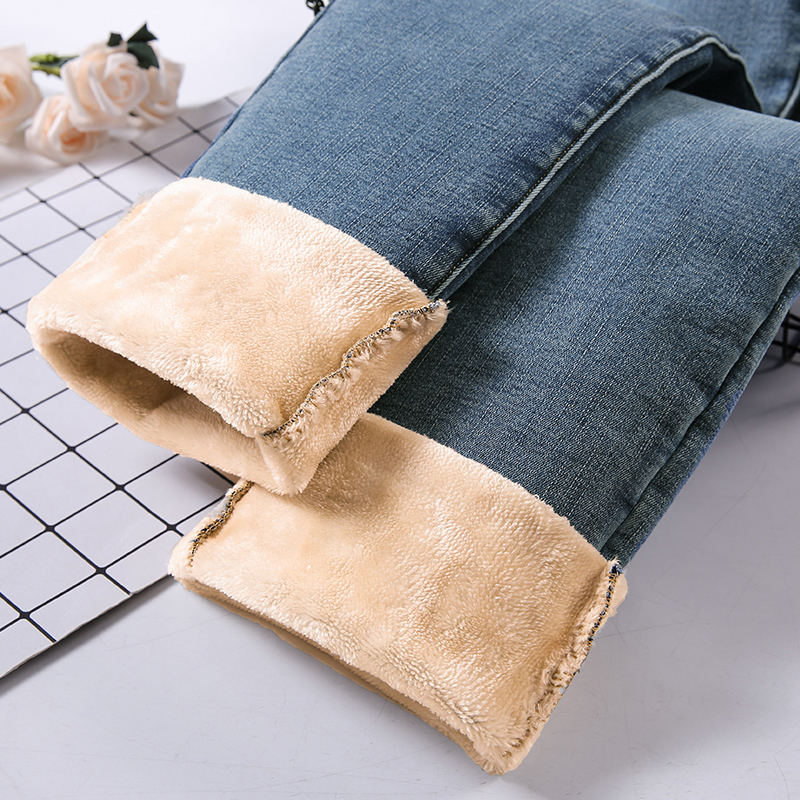 High waist plus velvet jeans women's 2020 new autumn and winter clothes slim loose padded Hyuna nine straight pants