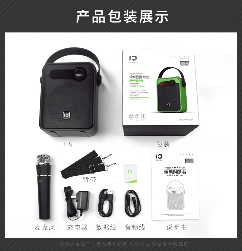 Ten degrees black king kong H8 outdoor handheld singing audio square dance portable morning exercise Bluetooth small speaker merchant collection code promotion broadcast teacher lecture large volume wireless amplifier