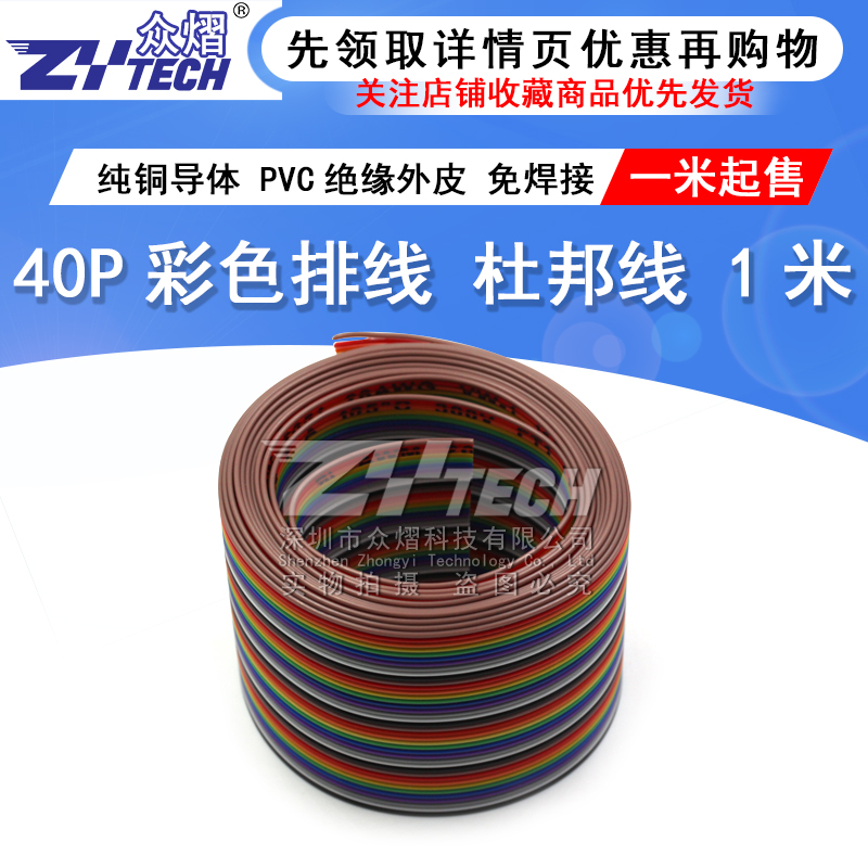 40P Colour flat cable can press 2 54 FC sleeves Dupont head 7 tinned wire Colour flat cable 1 m