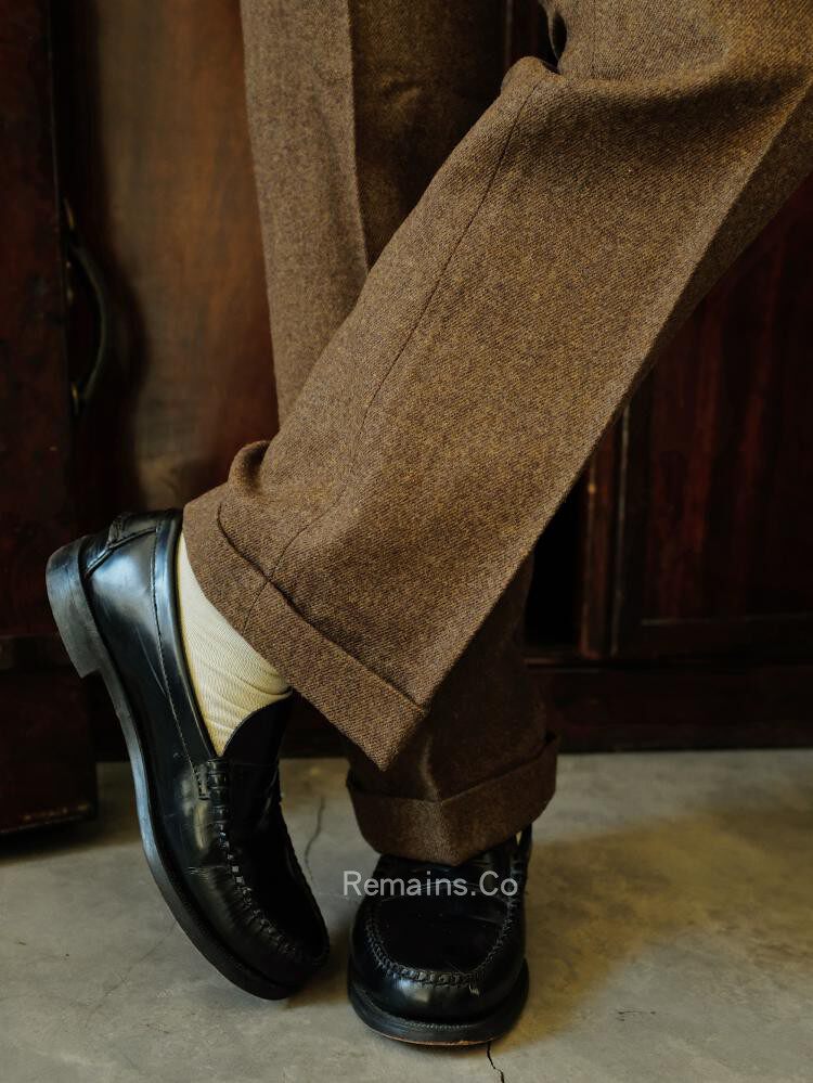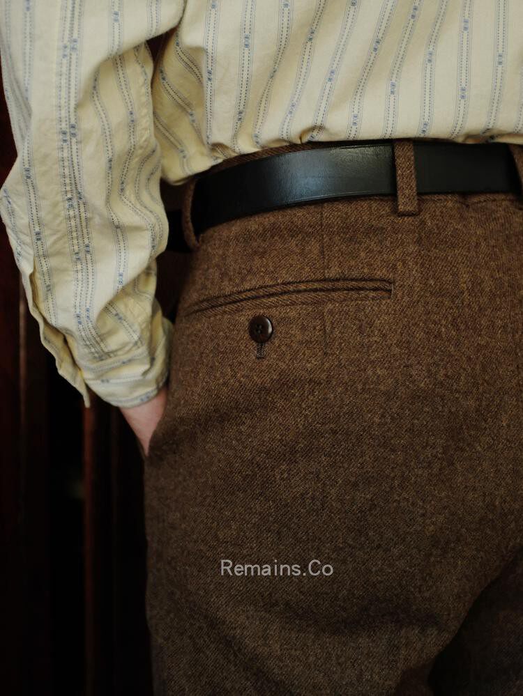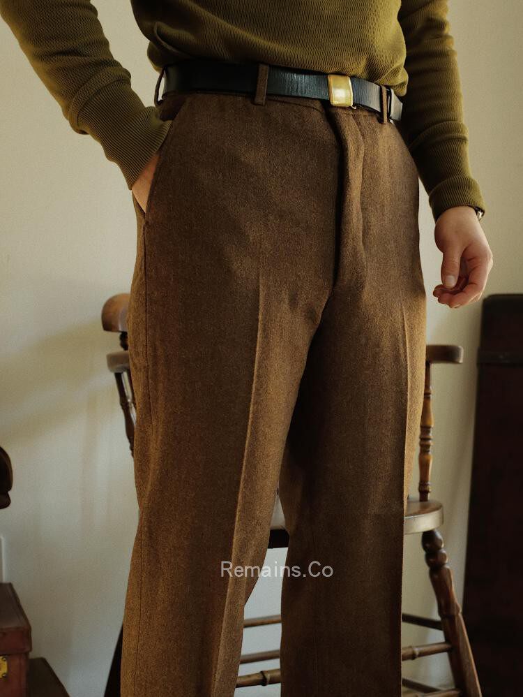Remains High Waist Straight UK Imported Brown Tweed Rough Tweet Wool Trousers Male