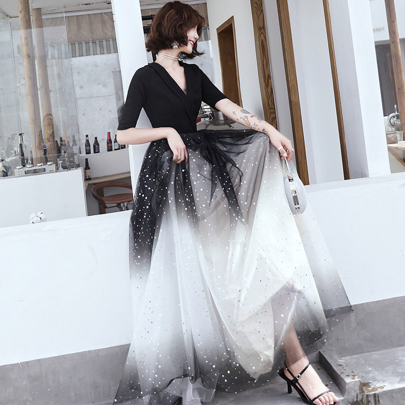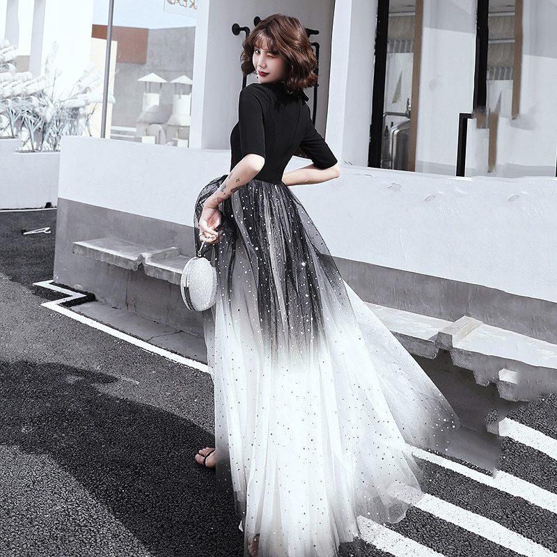 Black Temperament Evening Gown Dress Lady Banquets Fairy Music Raw Arts Exam long version of the Grand Choral troupe to serve the women's long dress