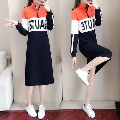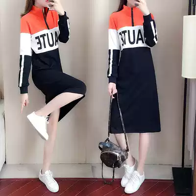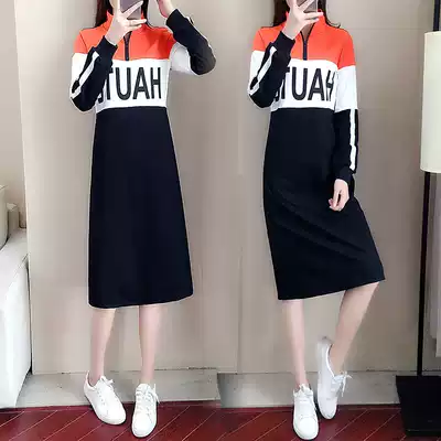 Plus velvet long version over the knee sweater 2021 new women's long sleeve Korean version loose hooded autumn winter long dress