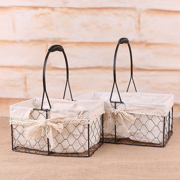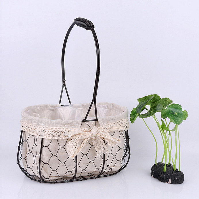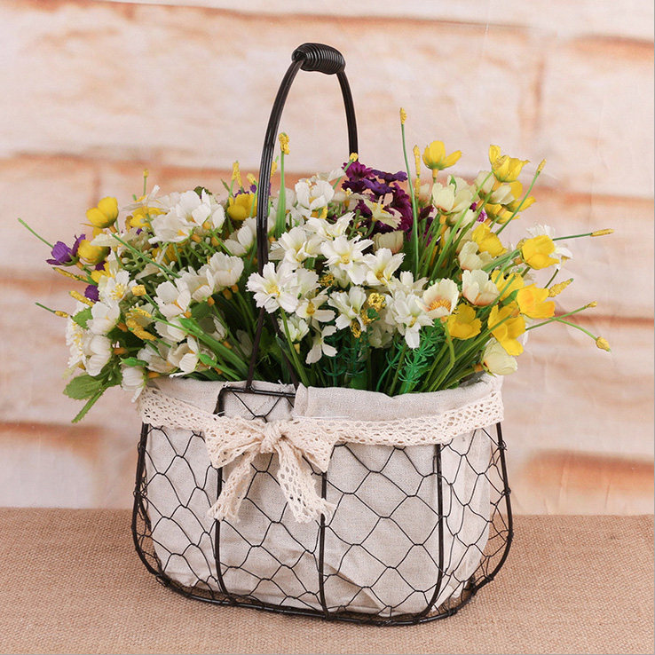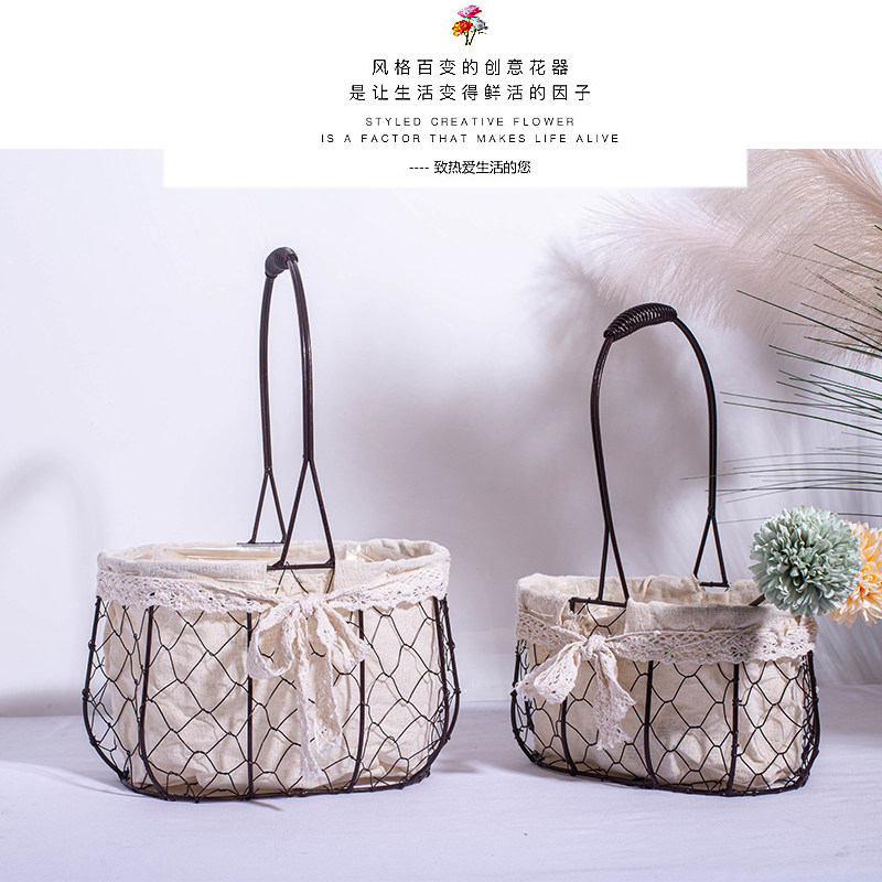 Iron Art Portable Flower Basket Metal Wedding Flower Arrangement Woven Blue Pendulum With Fresh Flower Pot Multi-Meat Basket Floral Return Gift Basket