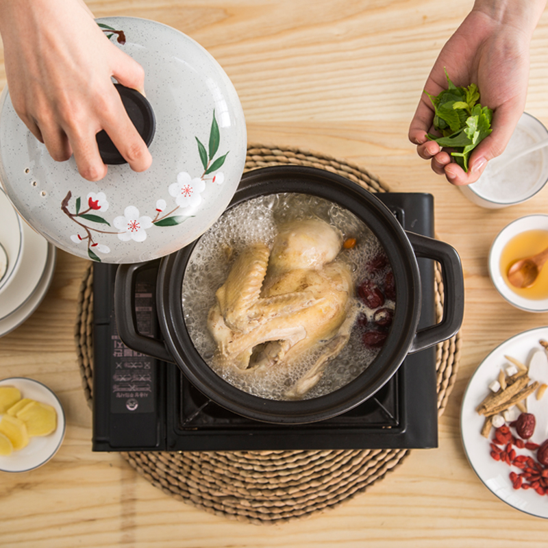7-liter round lid yellow soup pot 7-liter round lid red soup pot 7-liter round lid pink soup pot 7-liter hand-painted cherry blossom soup pot 7-liter hand-painted plum soup pot