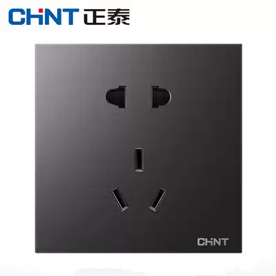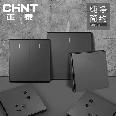 Chint black switch socket panel home wall type 2W Nordic retro Wall five-hole wall insert dark gray dark