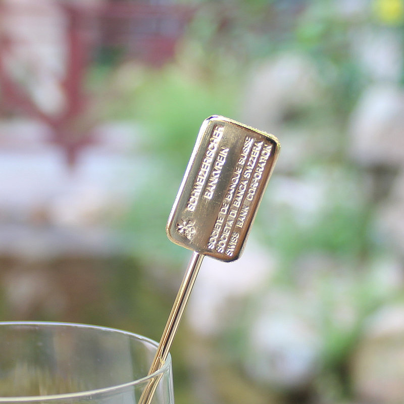 Japan Imports Stainless Steel Gold Plated Long Handle Stir Stick Creative BRICS Stirring Spoon Blend Wine Cocktail Stirring Stick