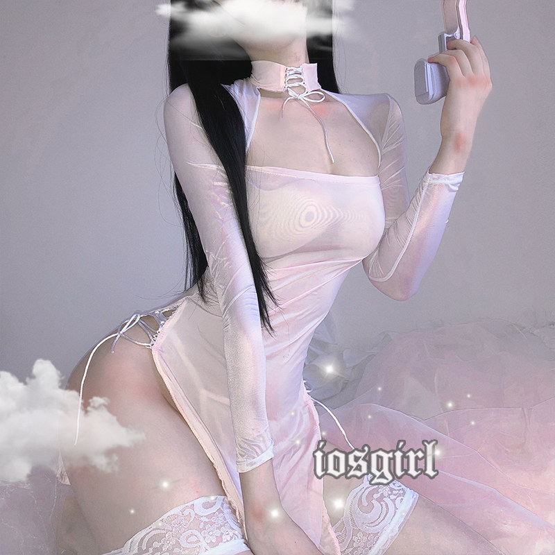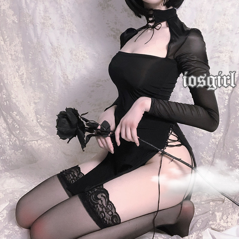 iosgirl temperament classical split perspective cheongsam low chest thin passion temptation uniform nightdress 9272