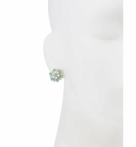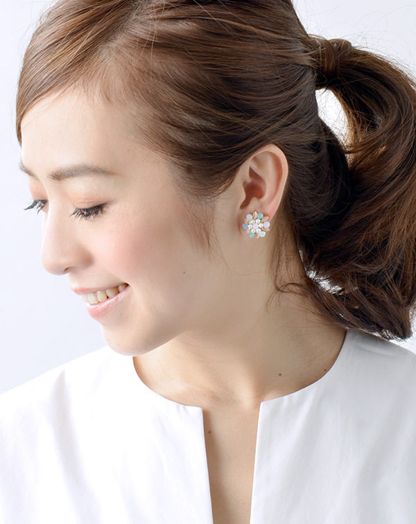 Self-retained, exported to Japan, cute, gentle and sweet, zircon, imitation pearl, multi-color flowers, earrings