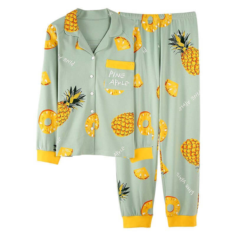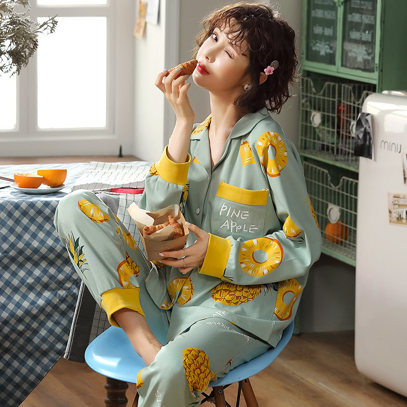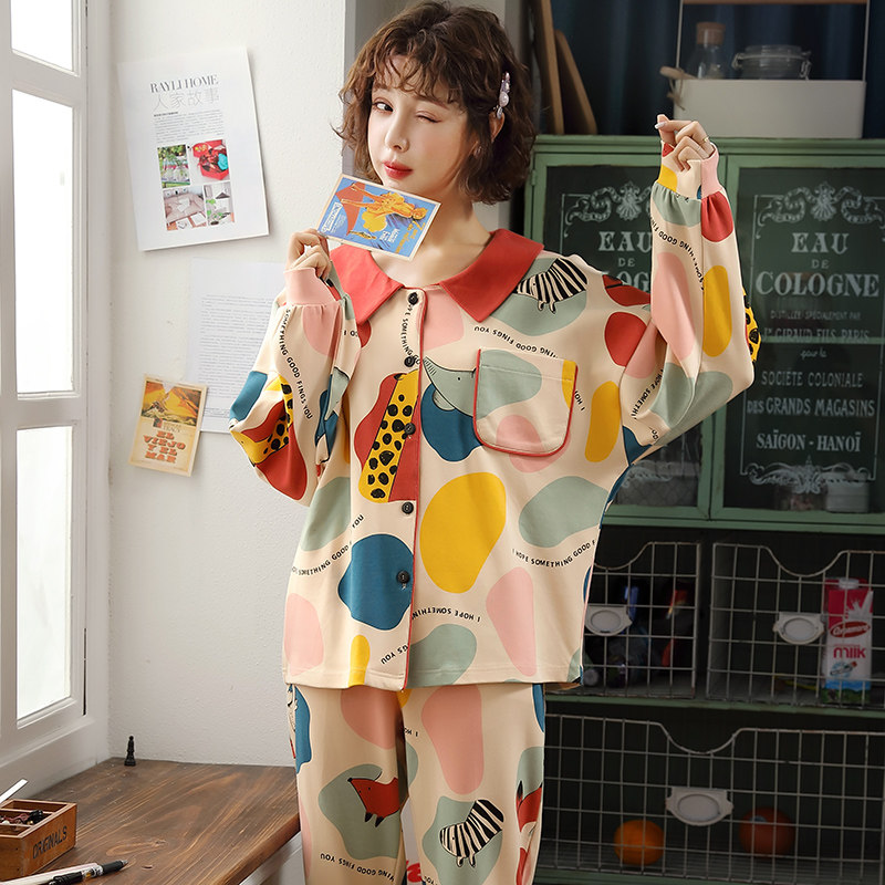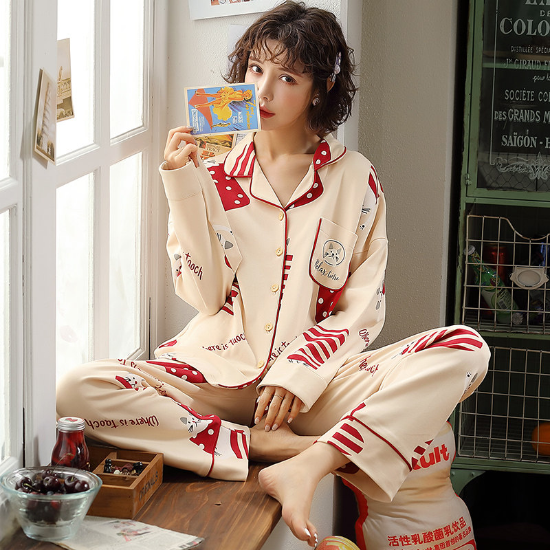Sleepwear Lady Spring Autumn Season Pure Cotton Long Sleeve Long Pants Up And Down Two Sets Plus Fattening Overweight Pregnant Women's Home Suit Suit