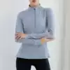 Nylon half zipper fitness clothing Long sleeve waist loose hem Running sports T-shirt quick-drying stretch yoga suit for women