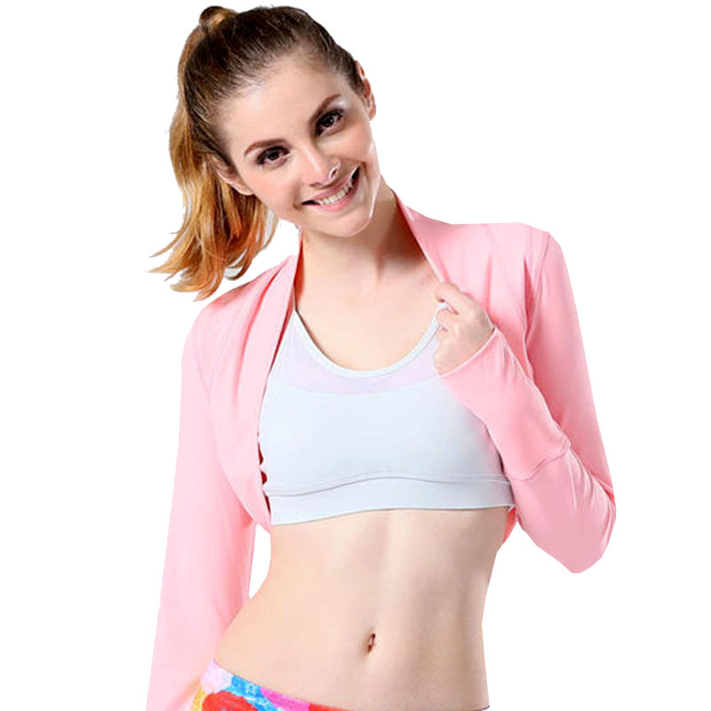 Women's Yoga T-shirt Short Slim Fitness Sports Small Jacket Quick-drying Finger Long Sleeve Top Pink Water Green