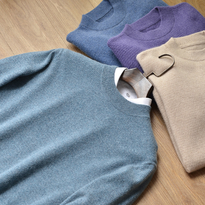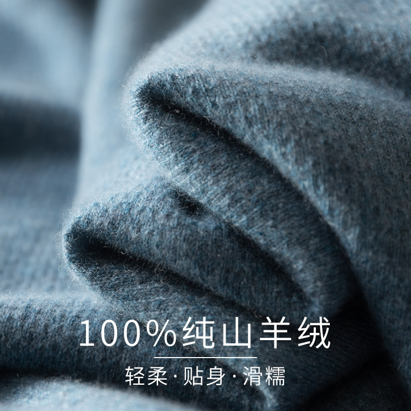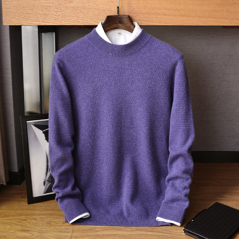 Autumn and winter 100% pure cashmere sweater men's half-high round neck thickened youth sweater knitted bottoming Ordos