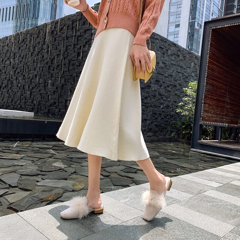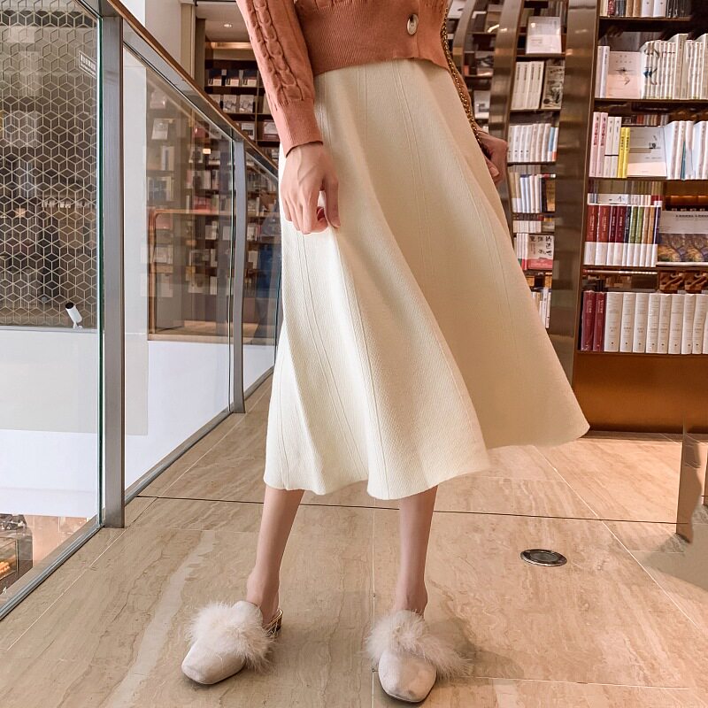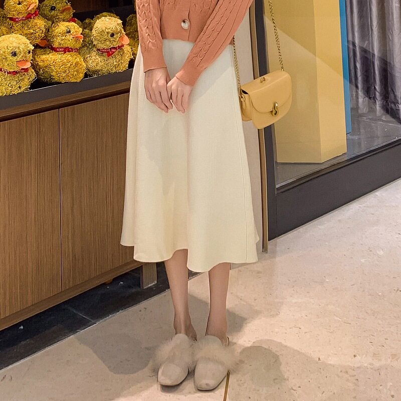 Half-body skirt high waist autumn winter long umbrella skirt white winter with sweater covering skirt