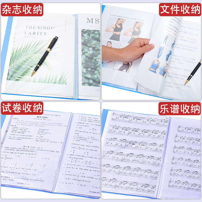 World Treasure folder Transparent insert a4 information book 60 pages Certificate storage book Student paper clip Sheet music clip Piano score clip Favorites Pregnancy test report Single birth test loose-leaf certificate collection book