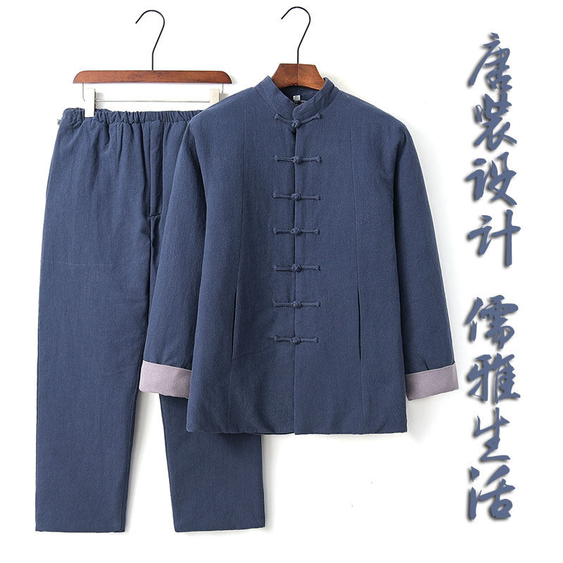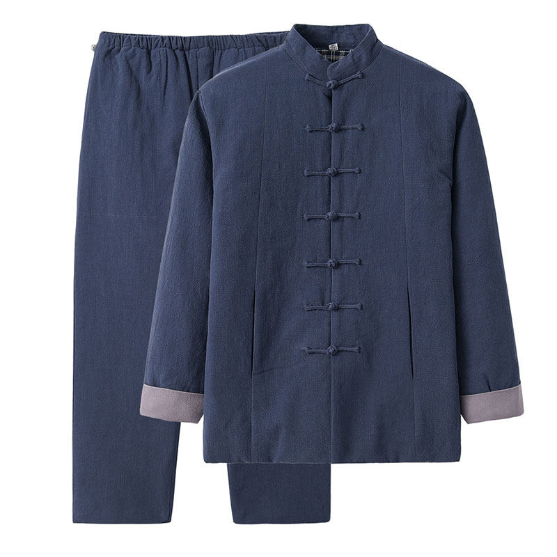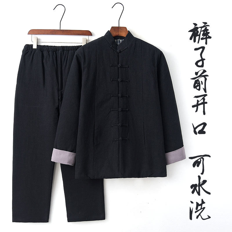 Middle-aged Tang suit men's cotton suit Chinese style men's winter quilted jacket cotton and hemp two-piece set Grandpa winter cotton coat