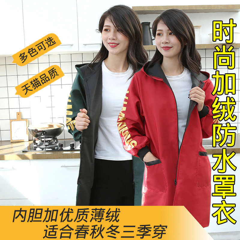 Waterproof winter smock adult coat female plus velvet thick fashion adult long-sleeved apron kitchen home work clothes