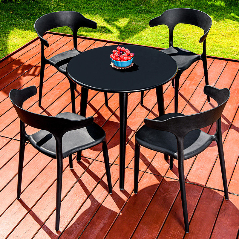 Outdoor table and chairs Courtyard Outside Swing Plastic Open-air Milk Tea Shop Outdoor Terrace Balcony Leisure Three sets with umbrella suit-Taobao