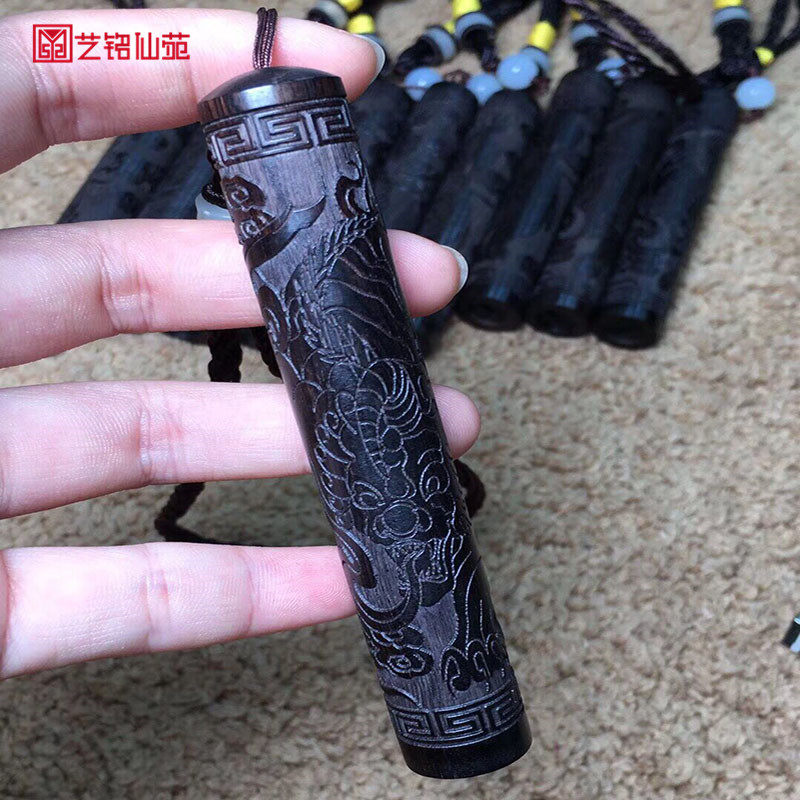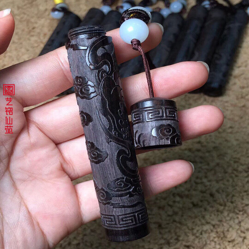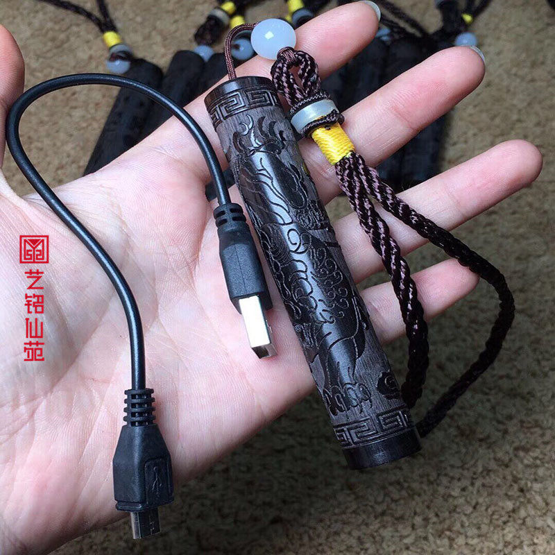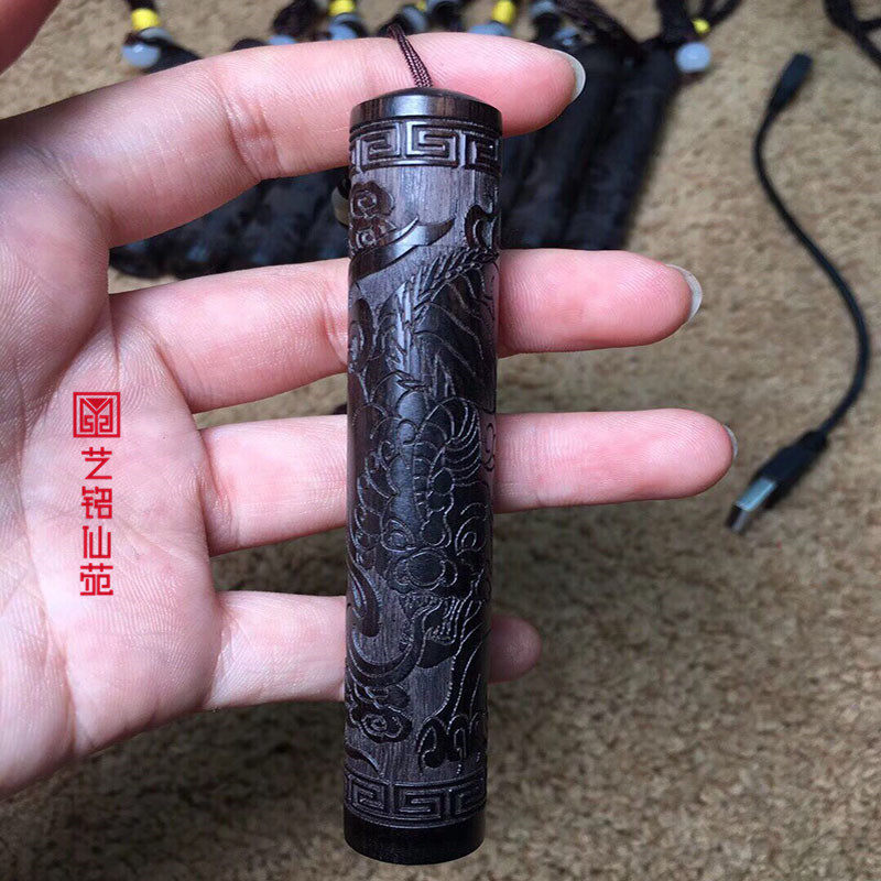Ebony Ruyi Gold Hoop Stick Fire Folding Solid Wood Carving Blow a Windproof Rechargeable Lighter