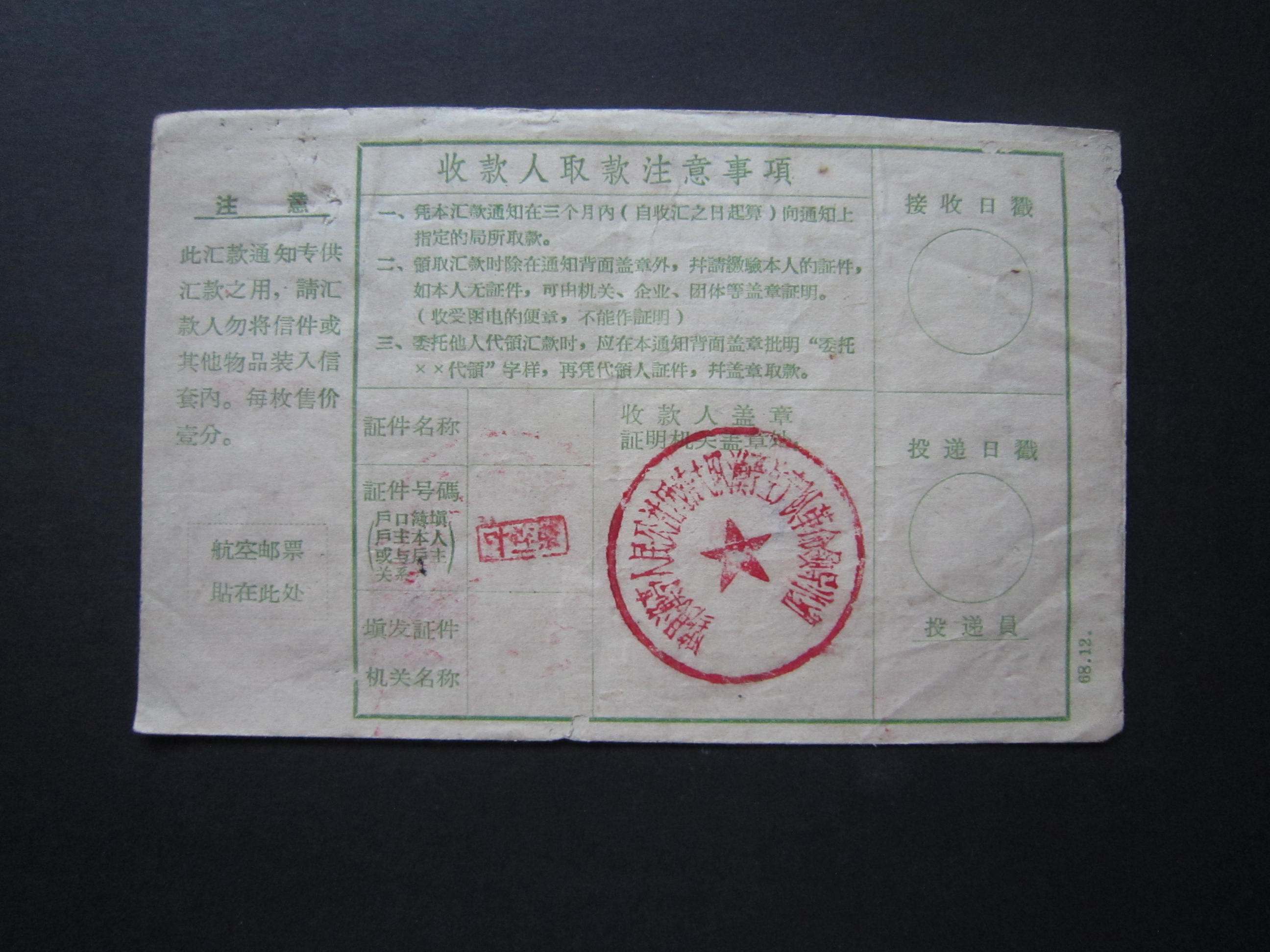 During the Cultural Revolution (Quotations from Chairman Mao), postal remittance notice - physical photography - 37868