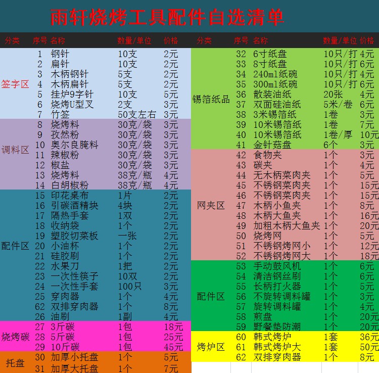 The barbecue tool self-selection of the payment package